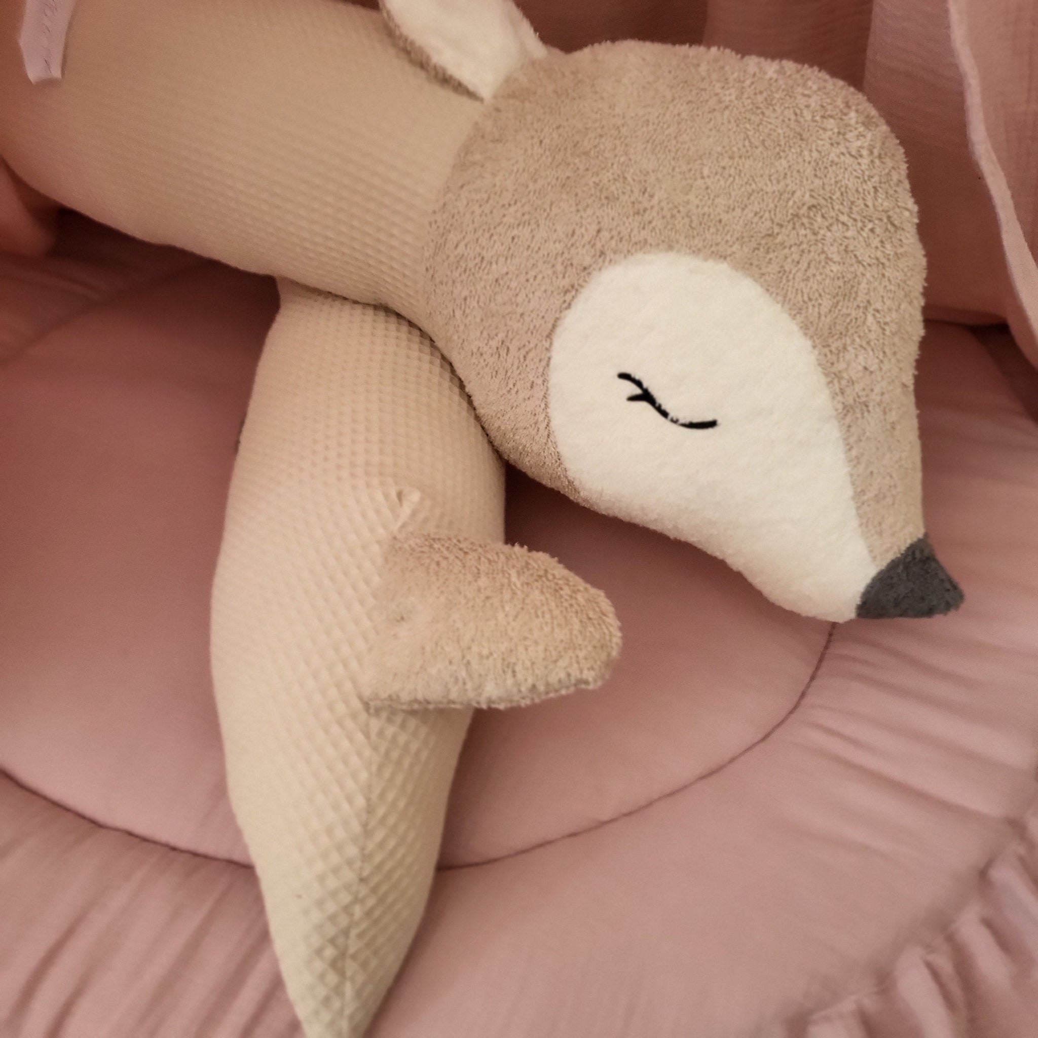 Unsere Bettschlange mit liebevoll gestaltetem Elefantenkopf ist nicht nur ein süßer Hingucker, sondern auch ein praktischer Schutz im Babybett. Mit ihrem Durchmesser von 15 cm ist sie besonders dick und weich – ideal für aktive Babys.