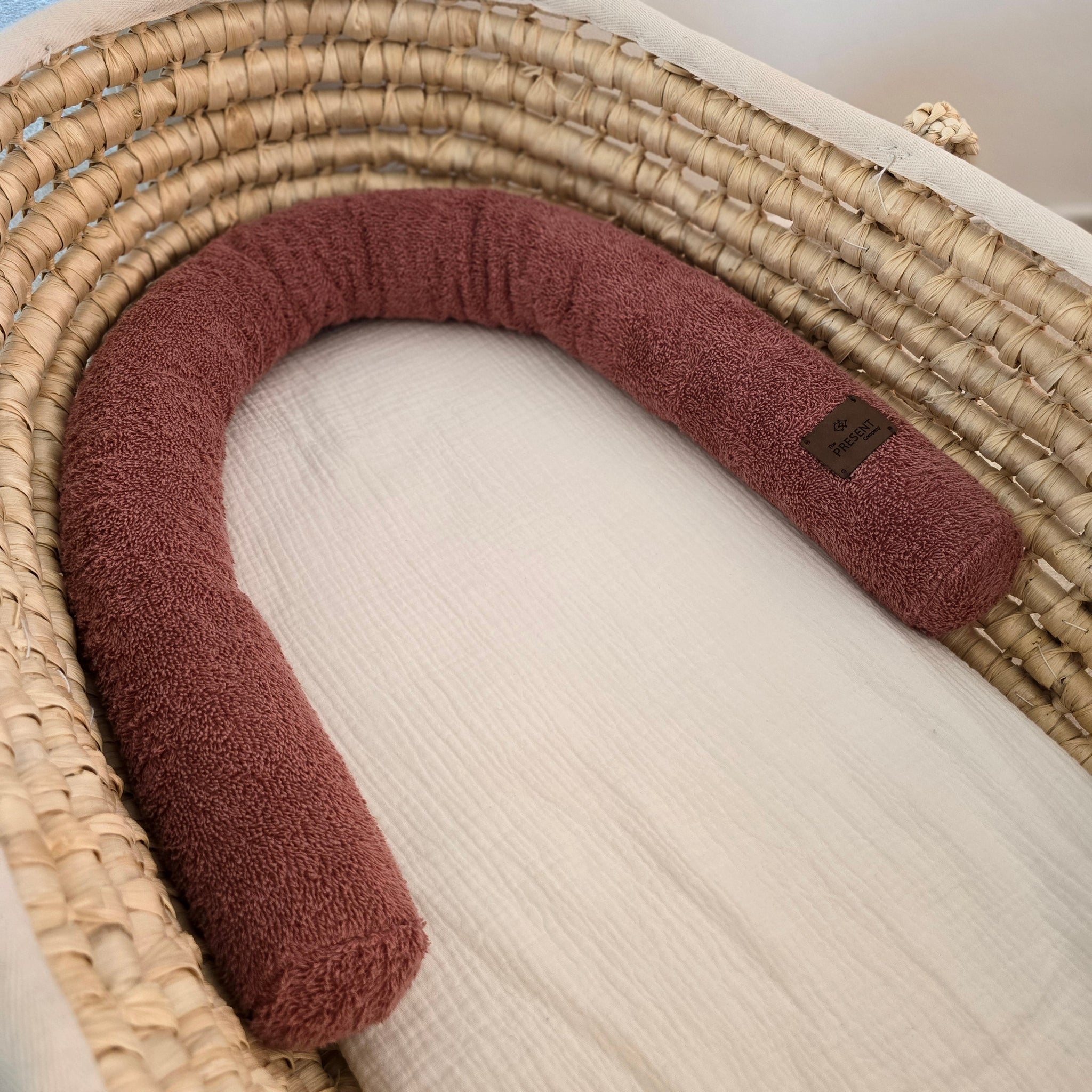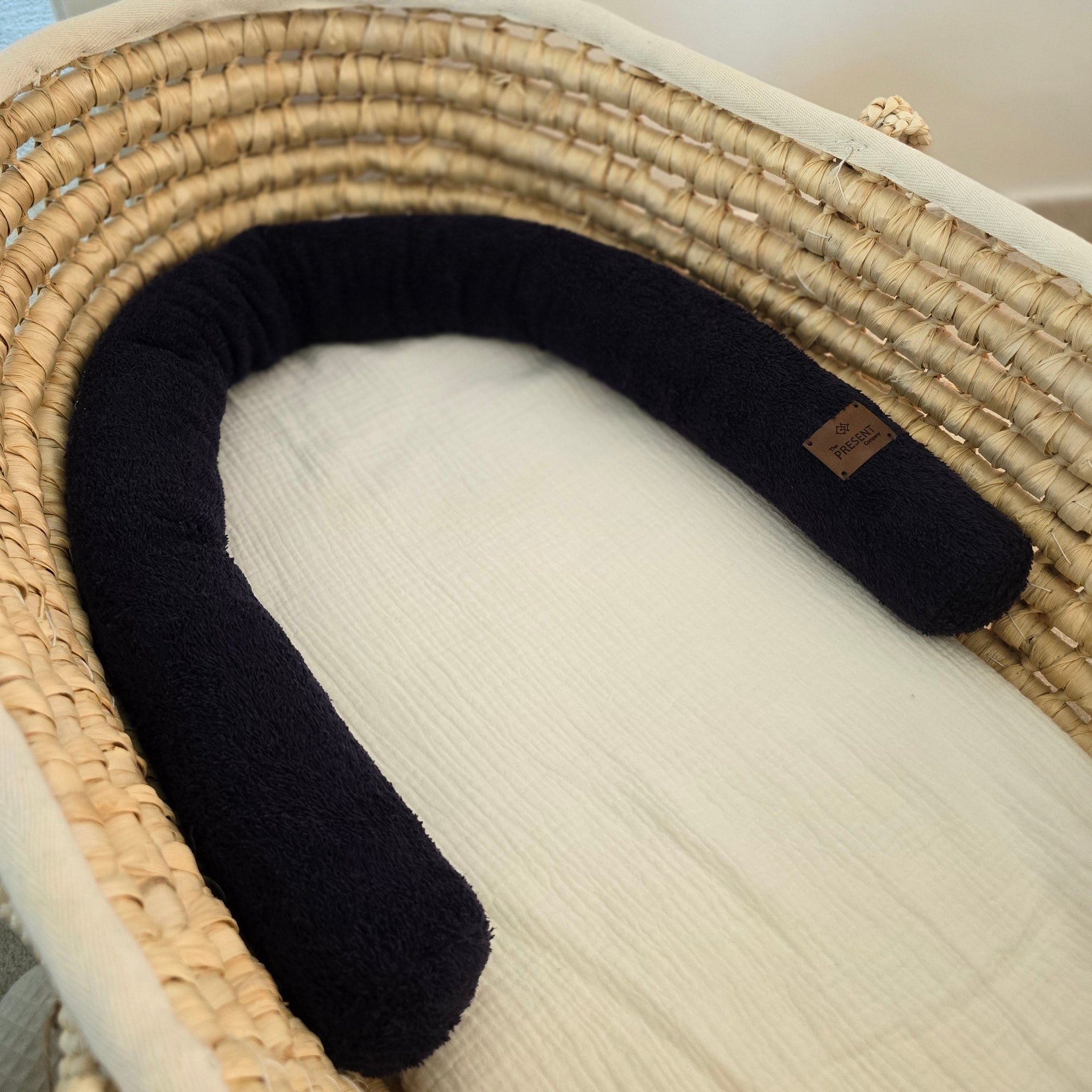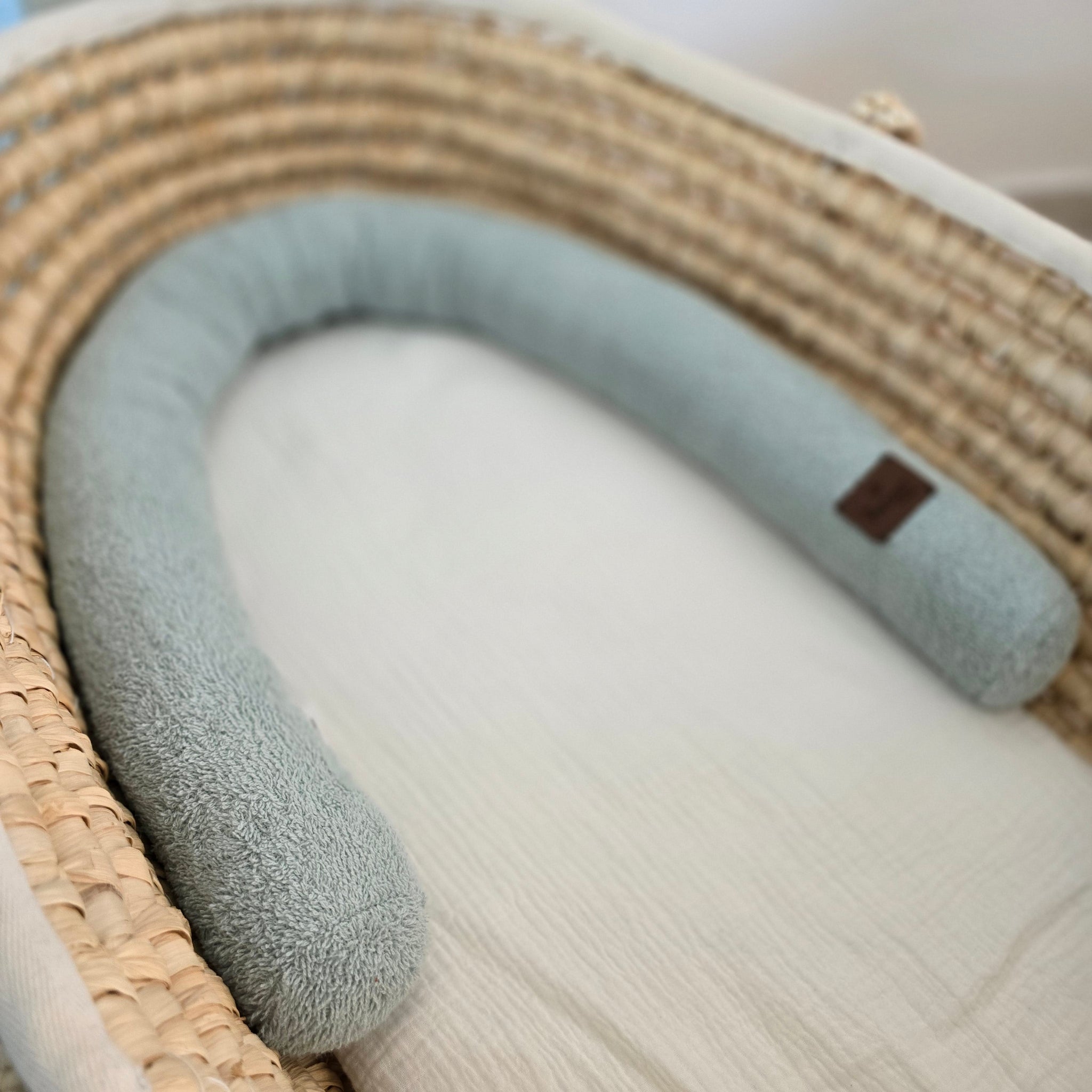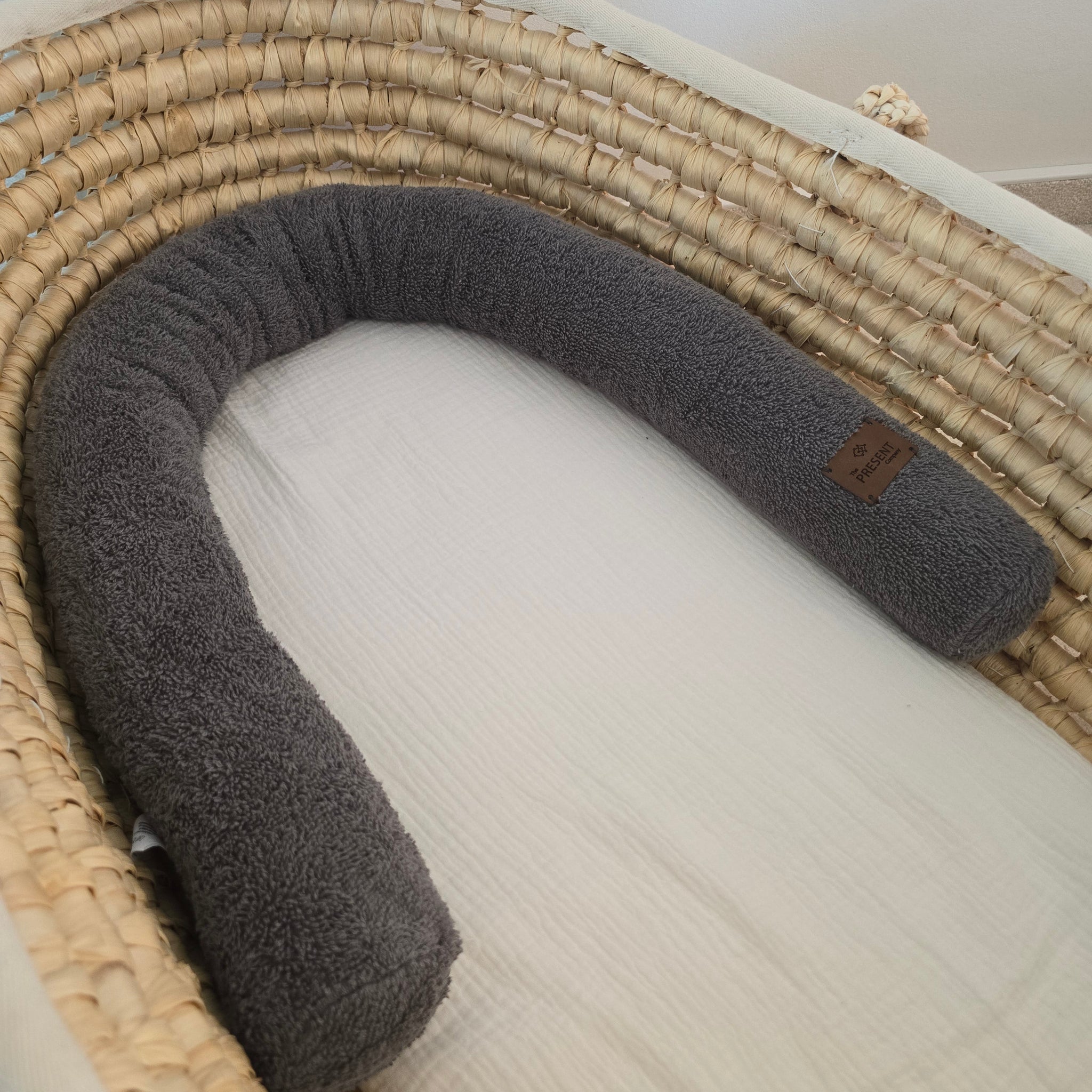 Unsere Bettschlange ist weich, kuschelig und ideal als Begrenzung im Kinderwagen oder im Stubenwagen.