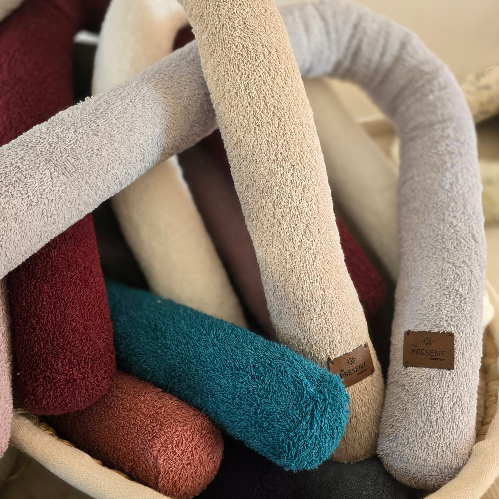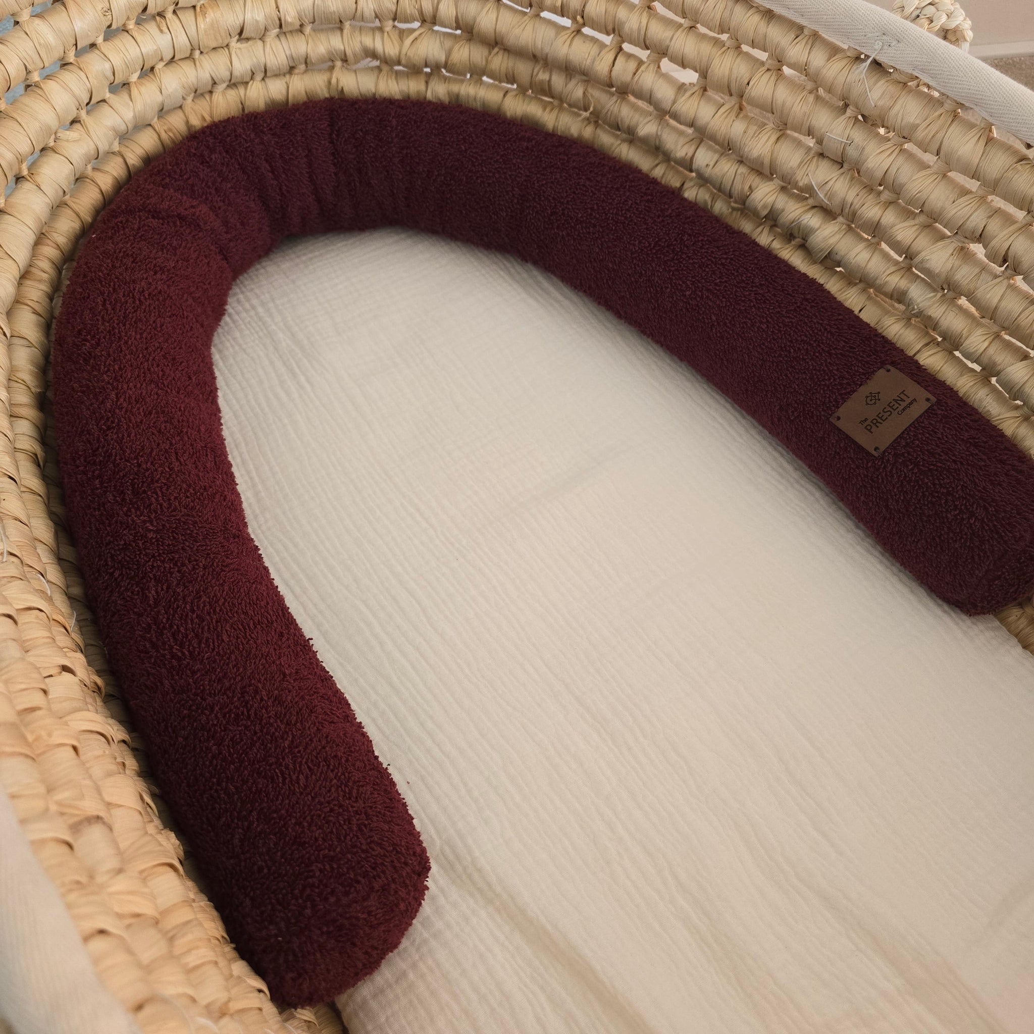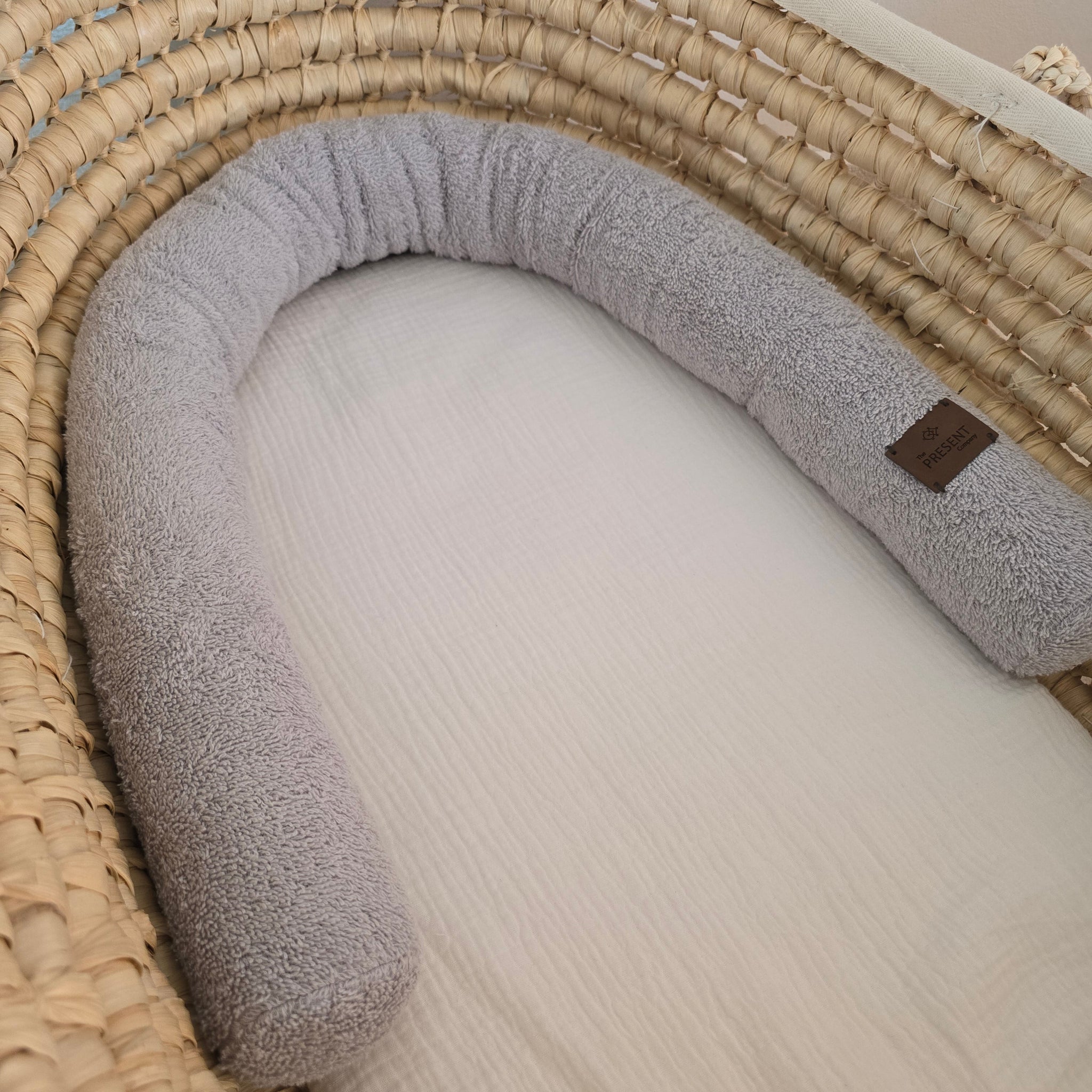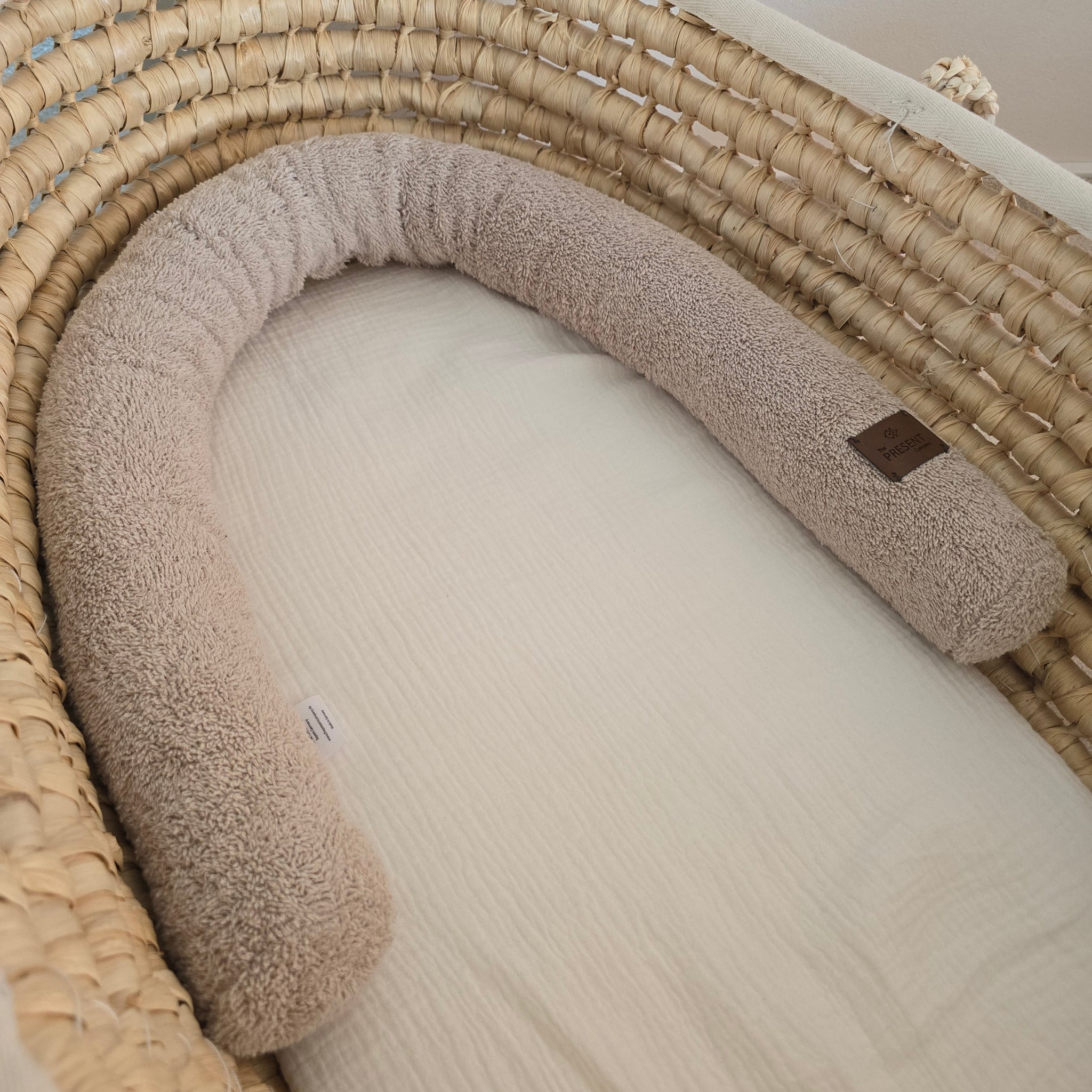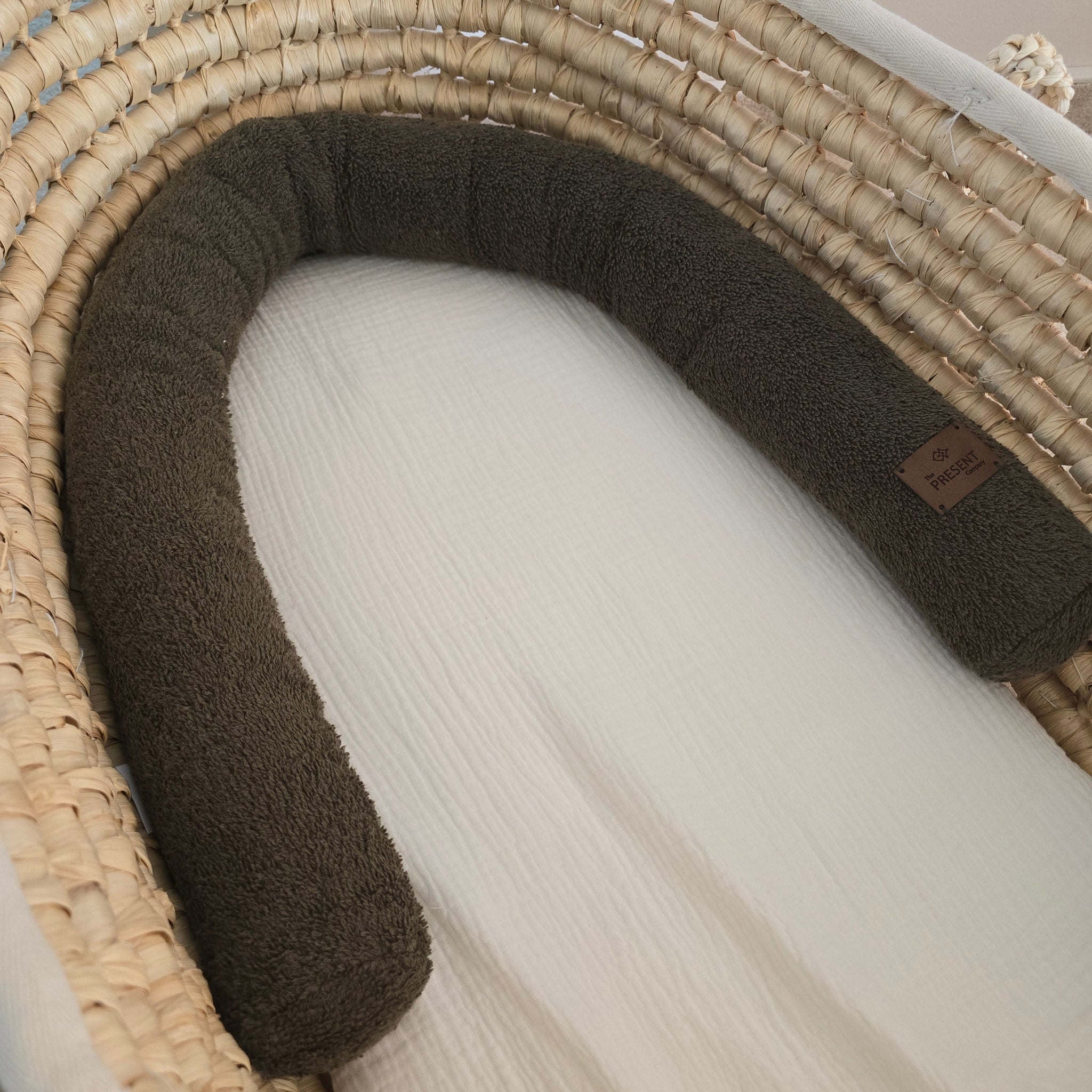 Unsere Bettschlange ist weich, kuschelig und ideal als Begrenzung im Kinderwagen oder im Stubenwagen.