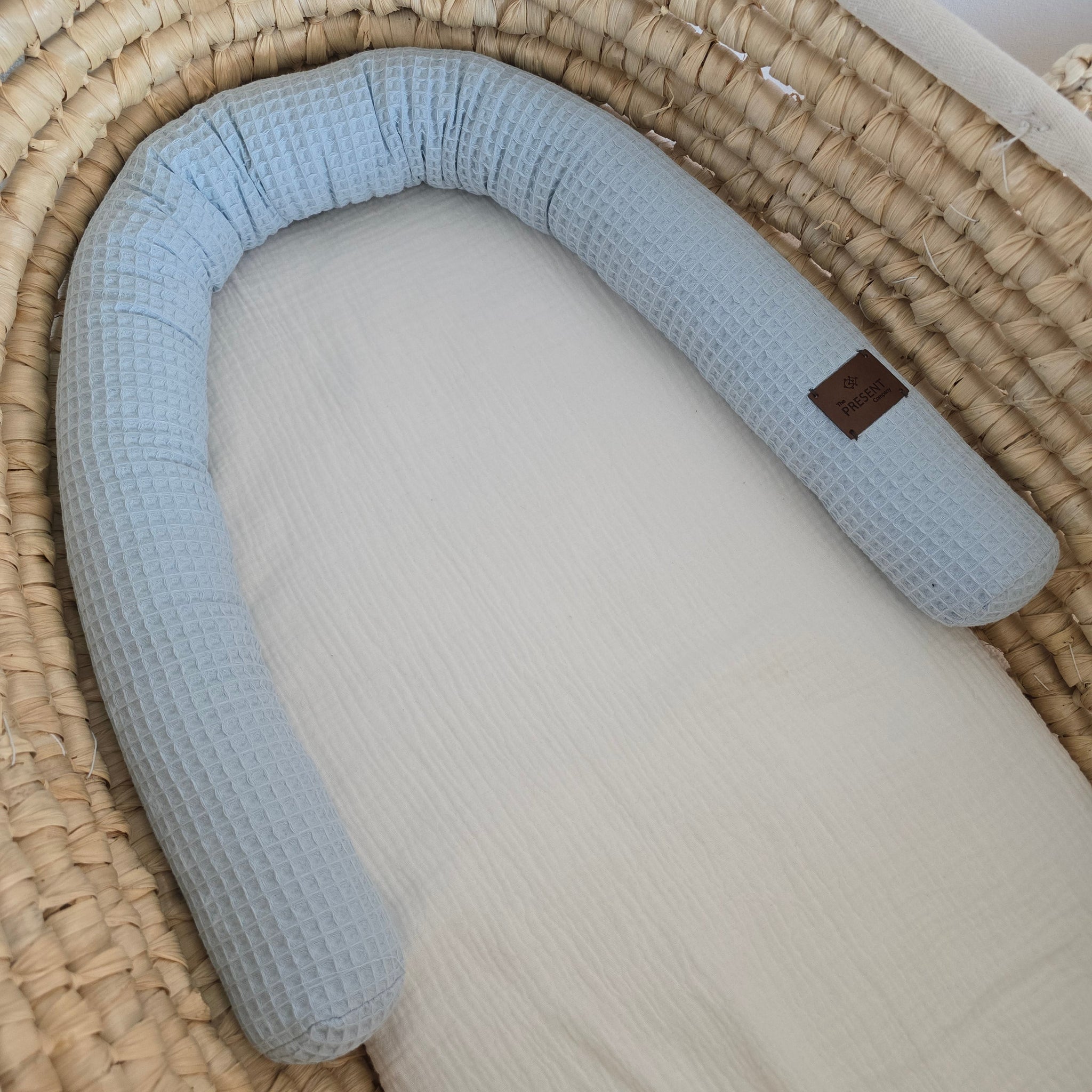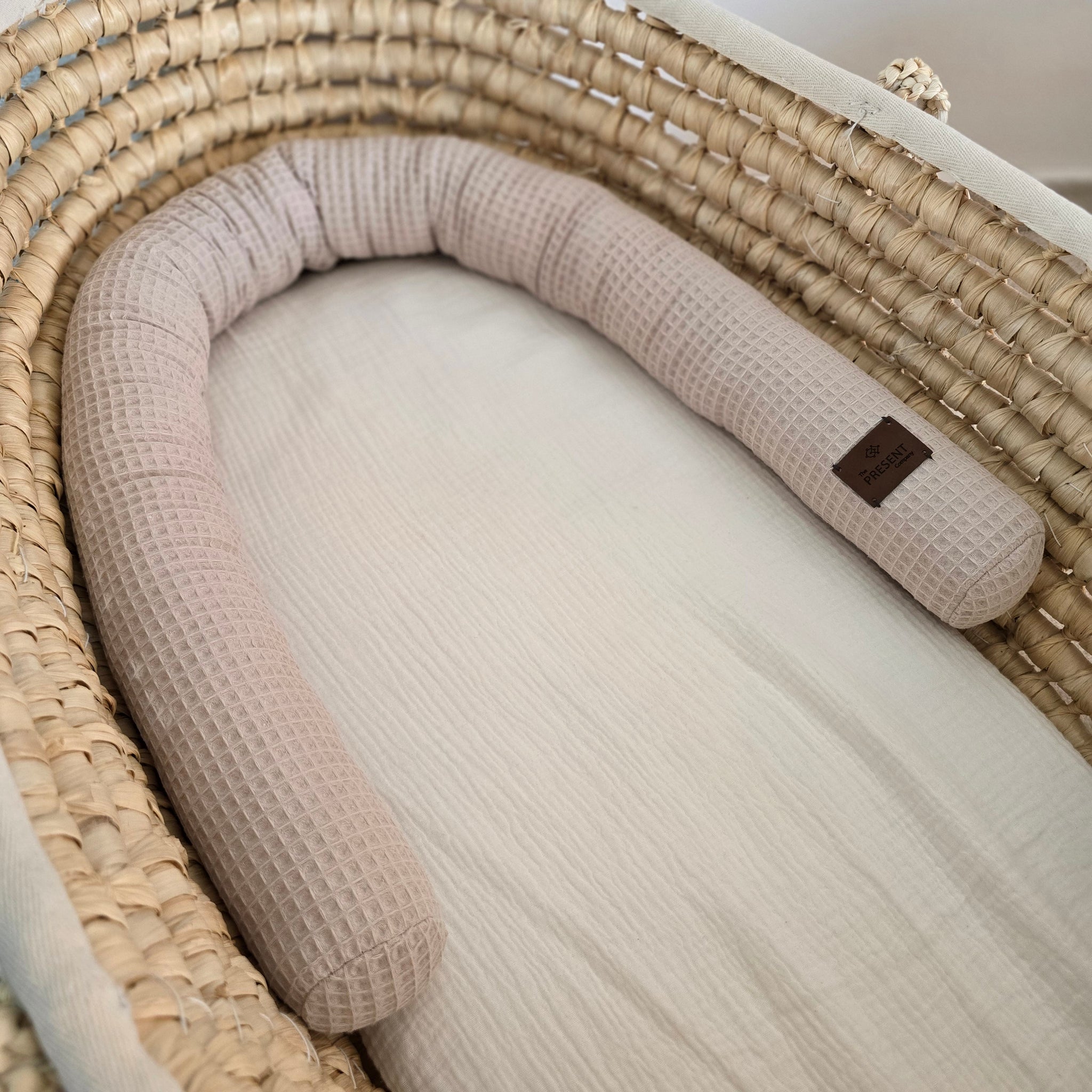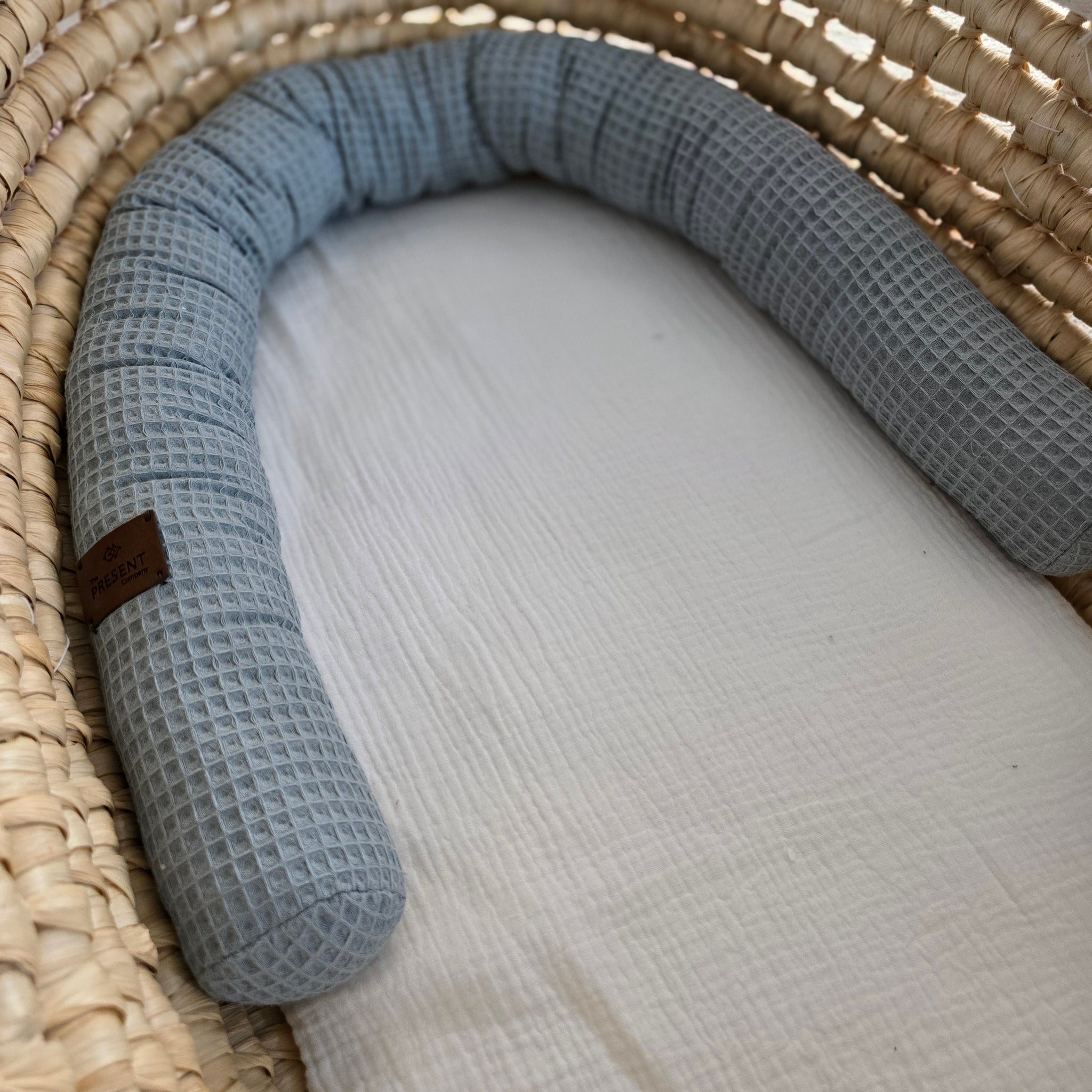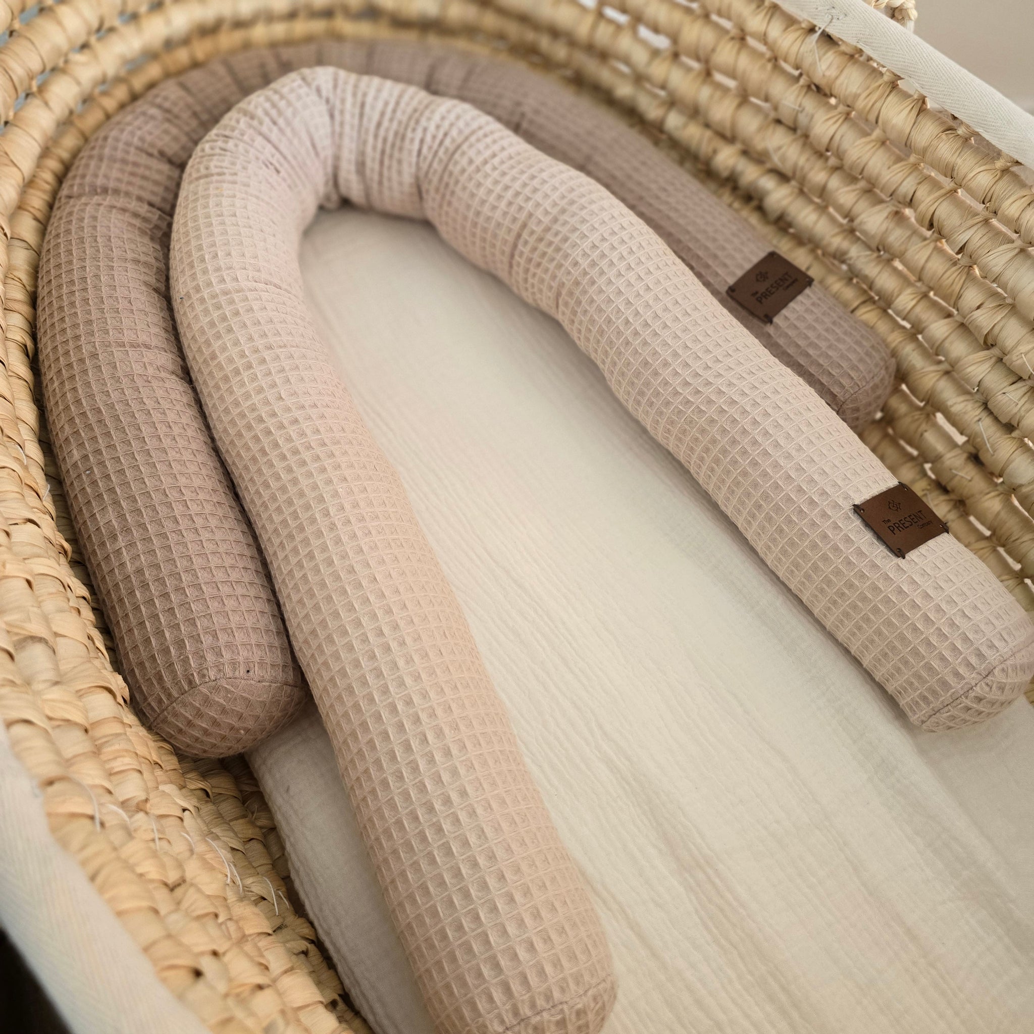 Unsere Bettschlange ist weich, kuschelig und ideal als Begrenzung im Kinderwagen oder im Stubenwagen.