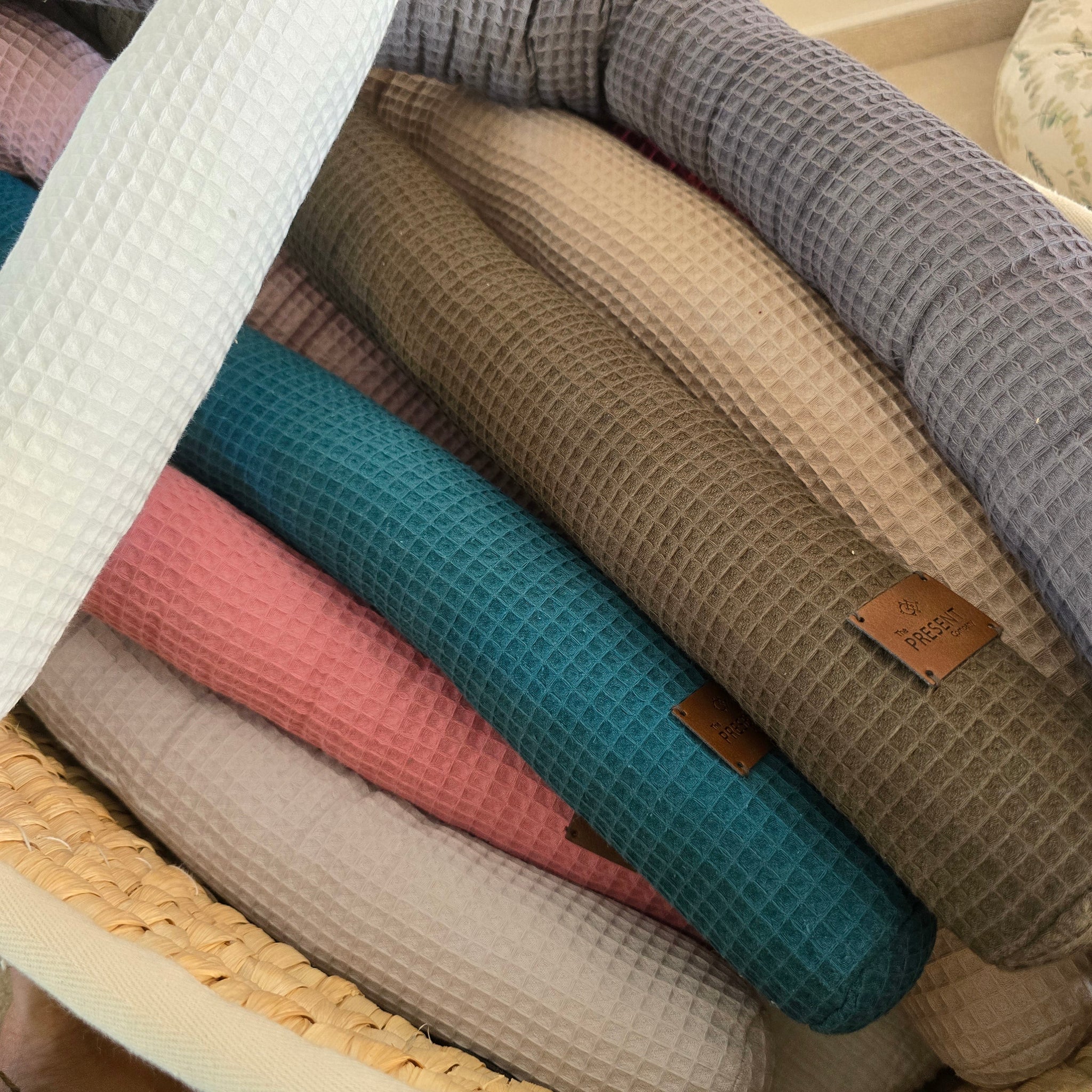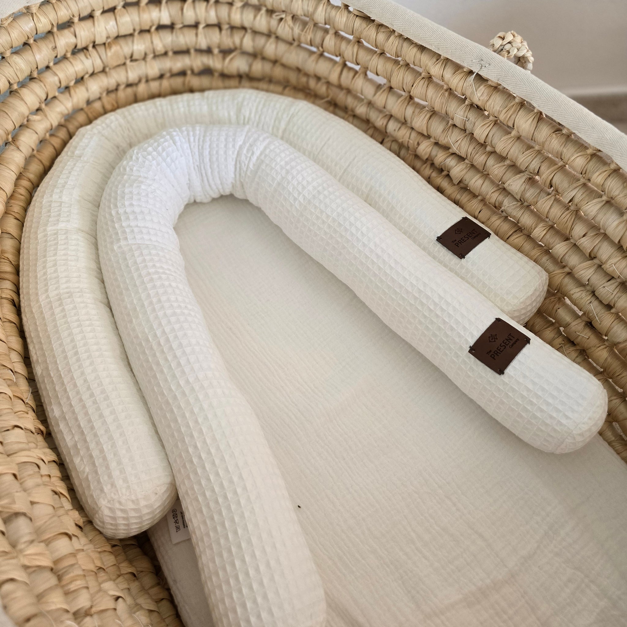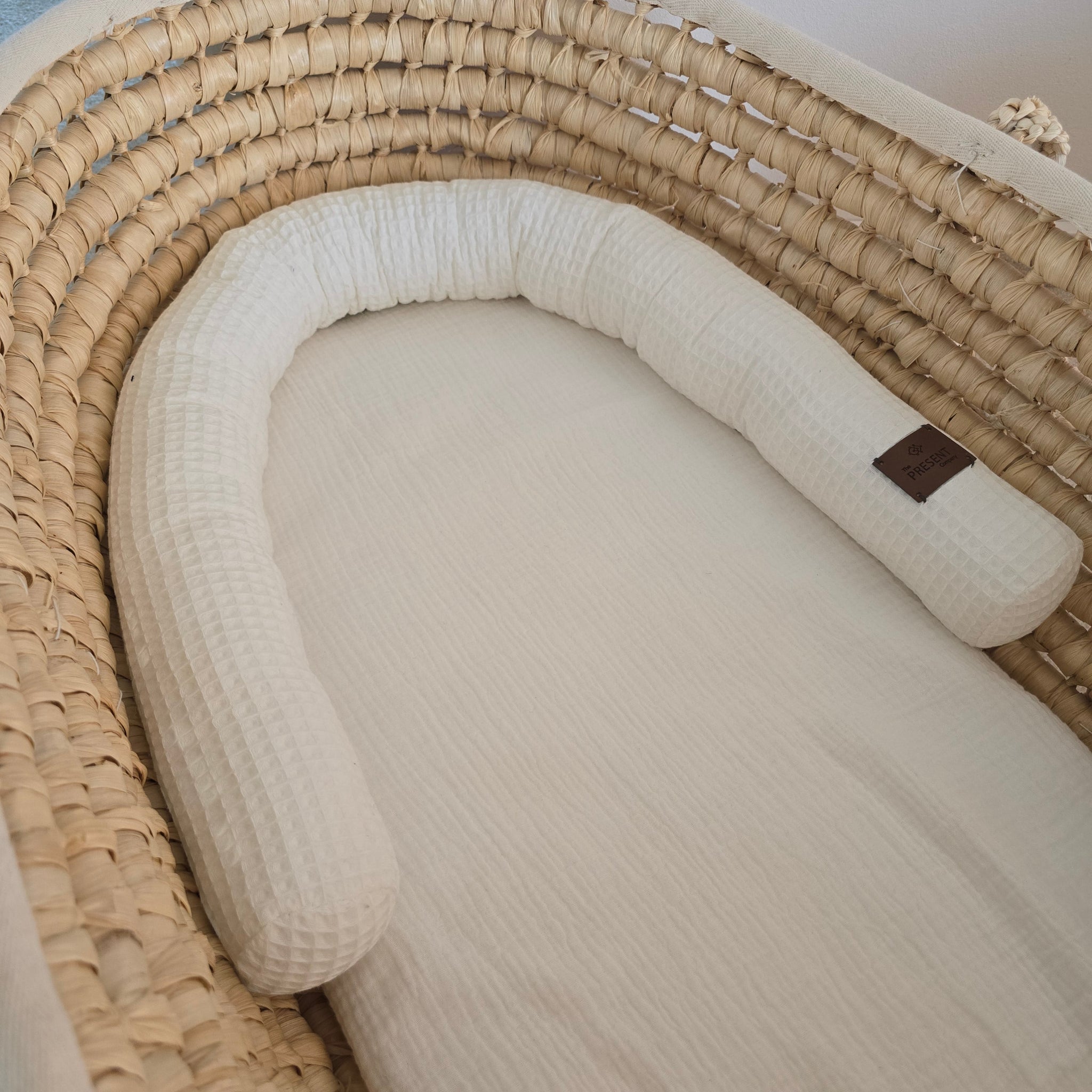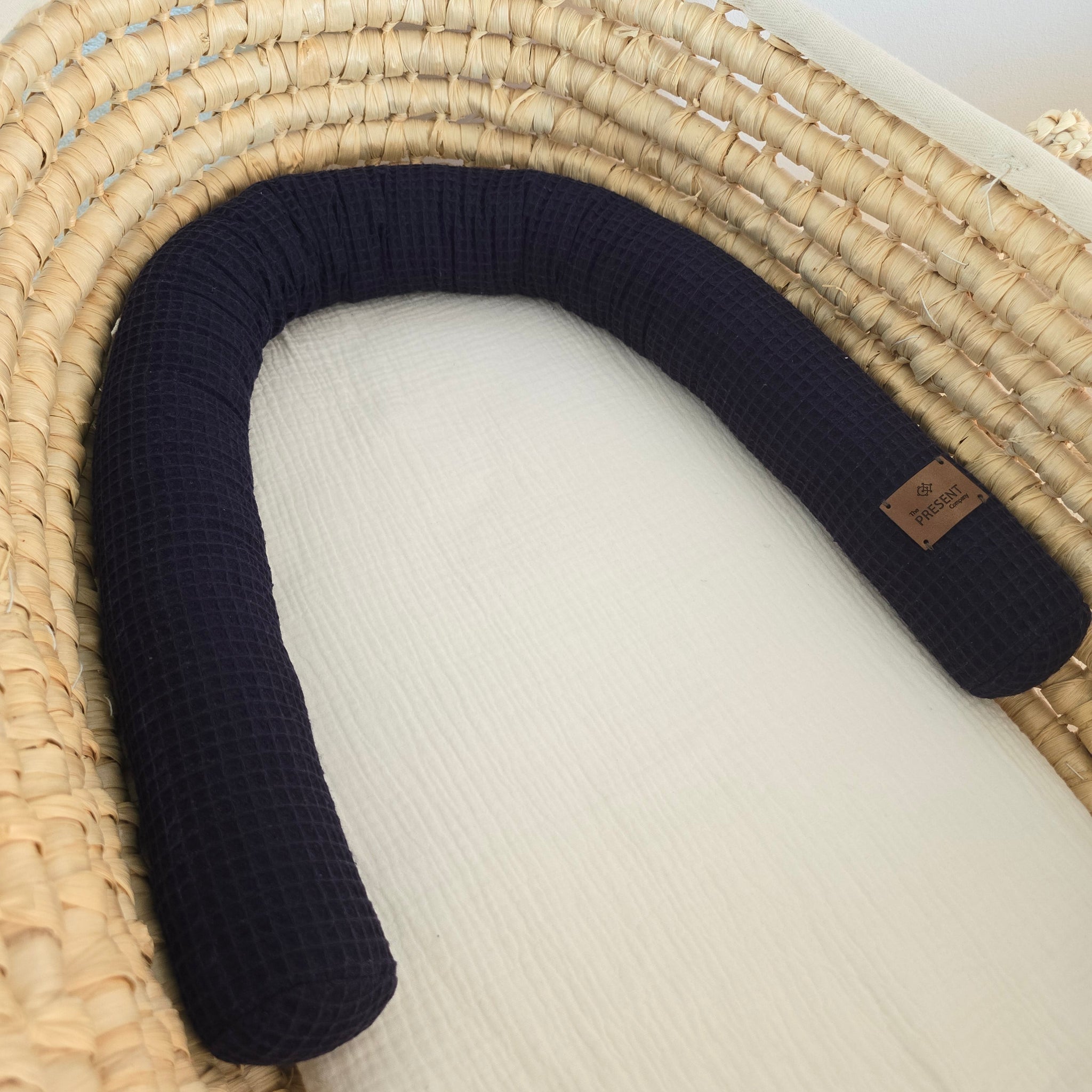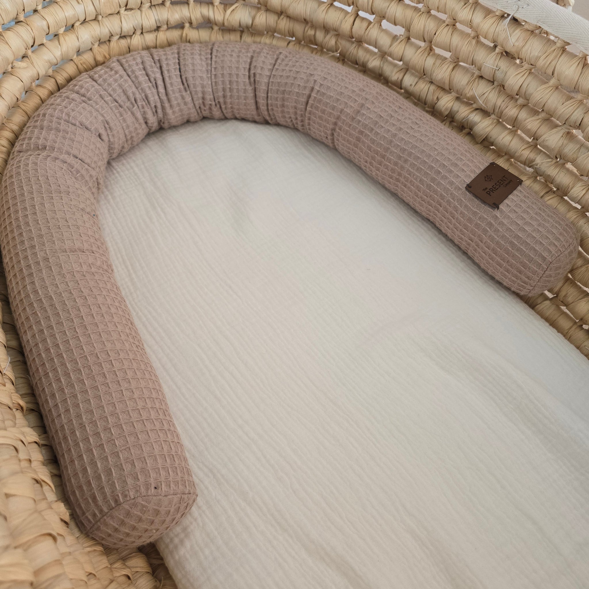 Unsere Bettschlange ist weich, kuschelig und ideal als Begrenzung im Kinderwagen oder im Stubenwagen.