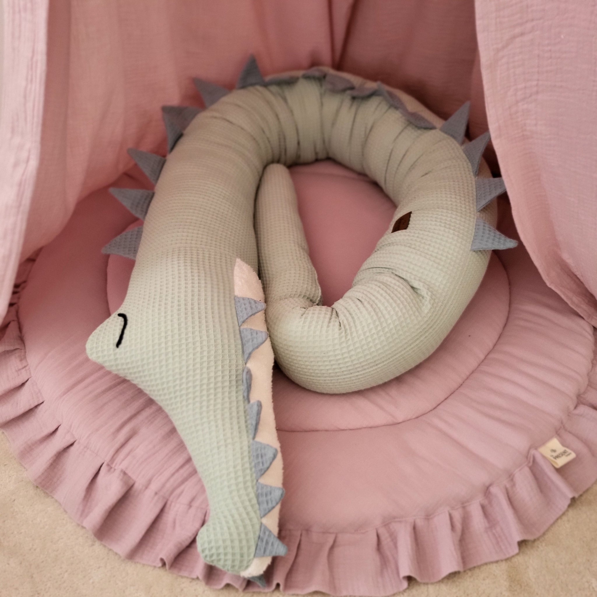 Ob als Nestchen, Randschutz oder zum Kuscheln – die Elefanten-Bettschlange sorgt für Geborgenheit und verhindert, dass sich dein Baby an den Gitterstäben stößt oder darin hängen bleibt.