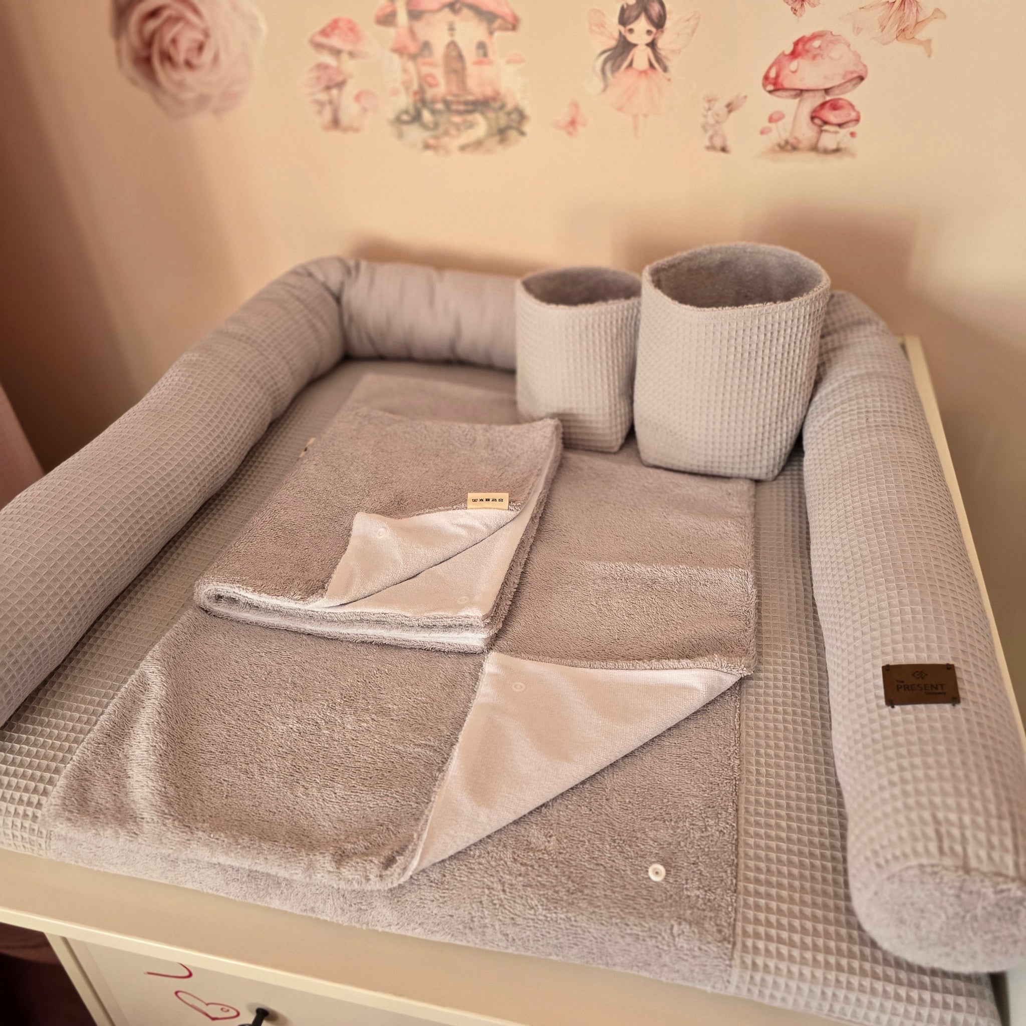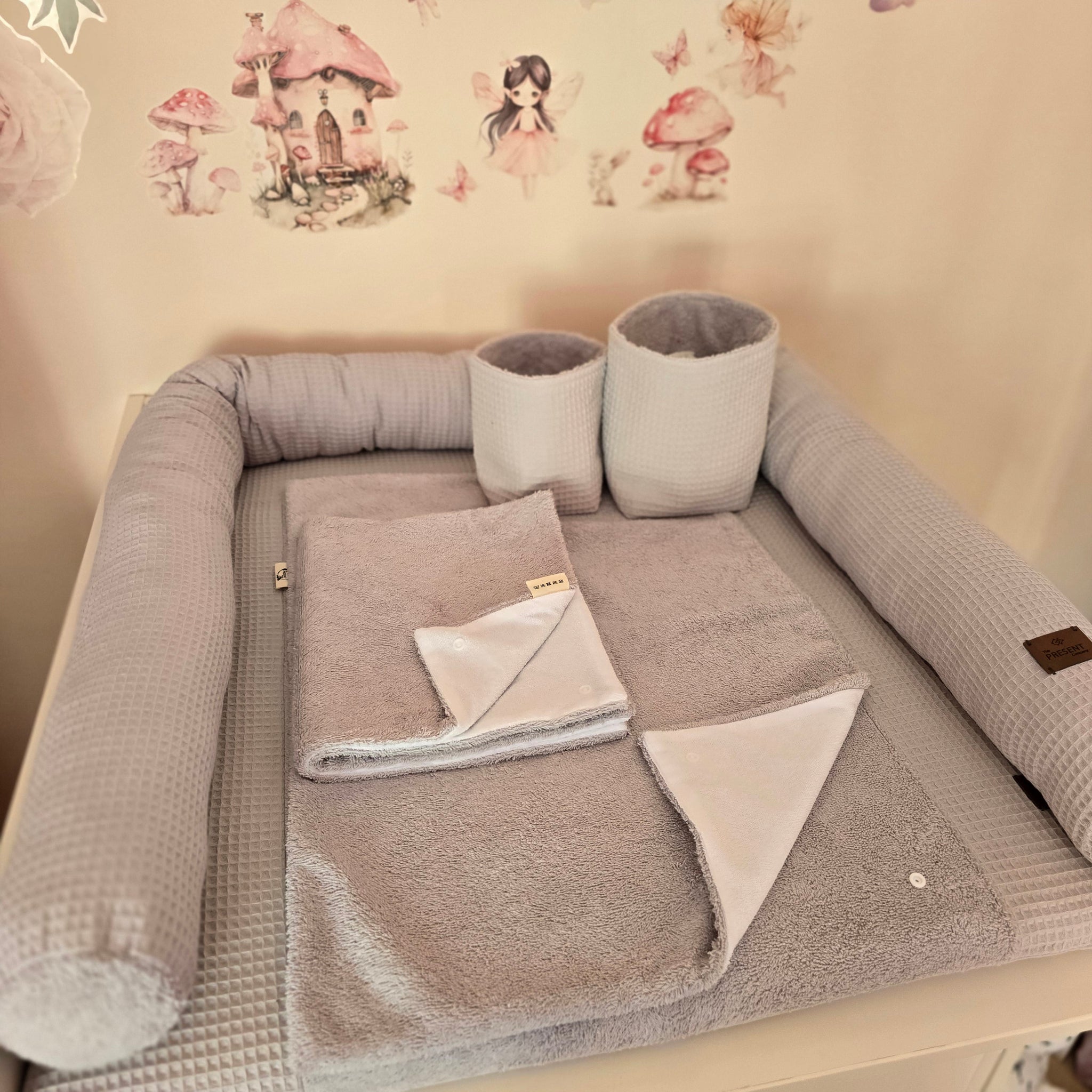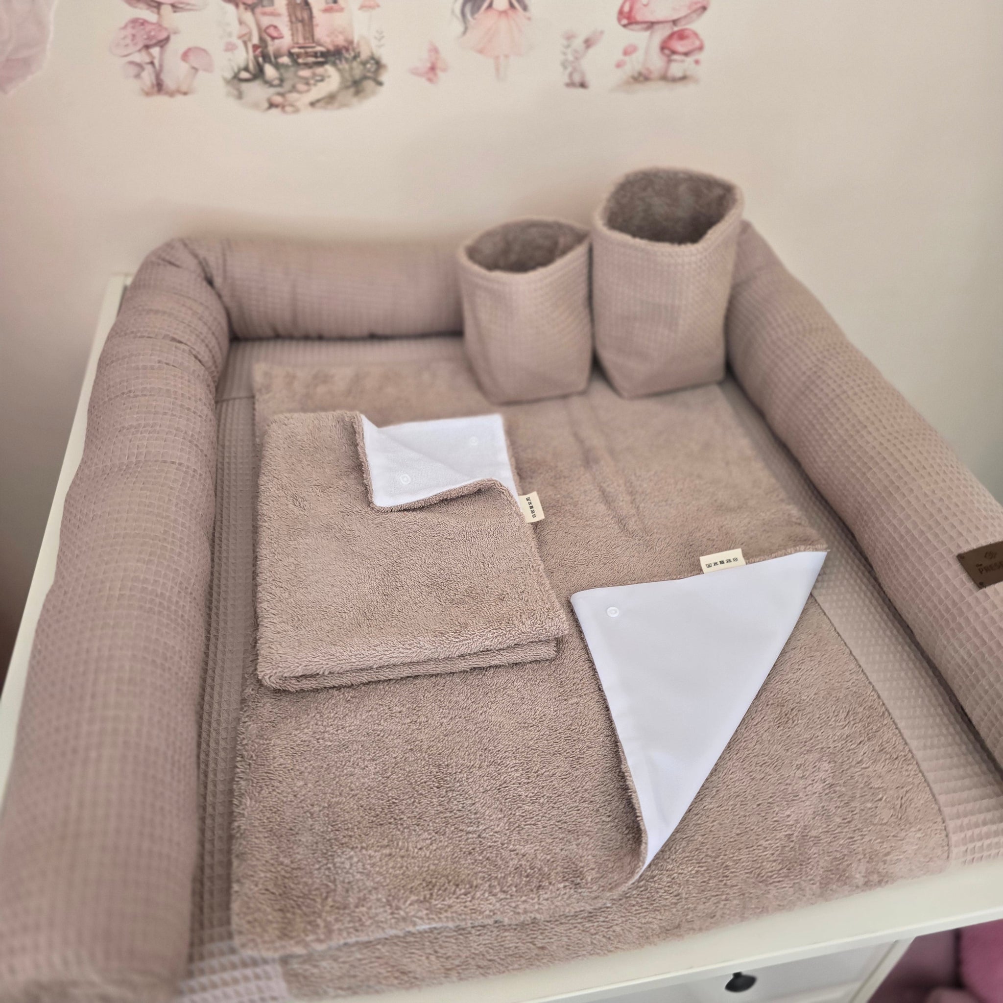 Mit diesem liebevoll zusammengestellten Set hast du alles, was du für deine Wickelausstattung brauchst – perfekt aufeinander abgestimmt, hochwertig verarbeitet und mit viel Herz handgefertigt. Du musst dir keine Gedanken mehr machen – einfach auspacken, einrichten und loslegen!