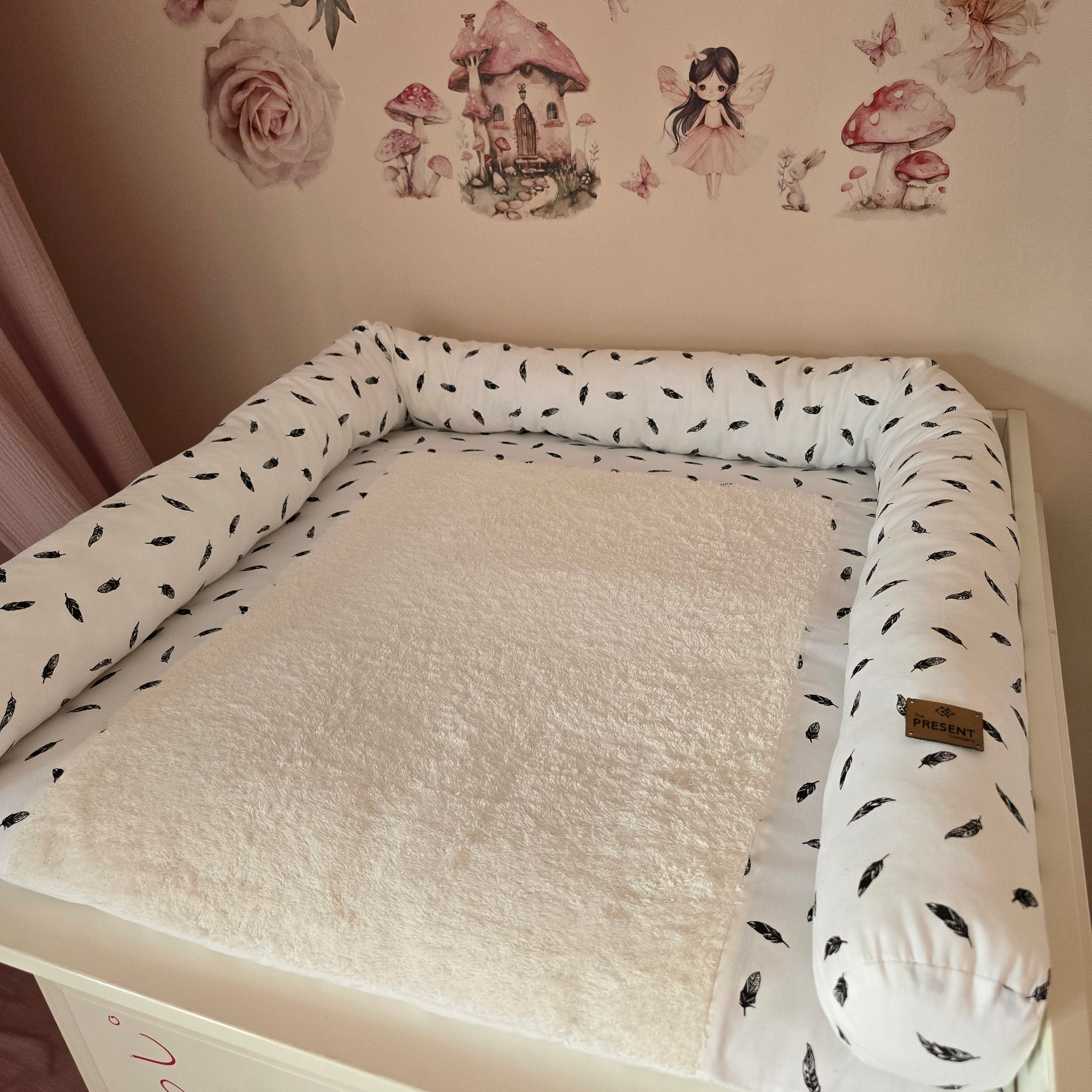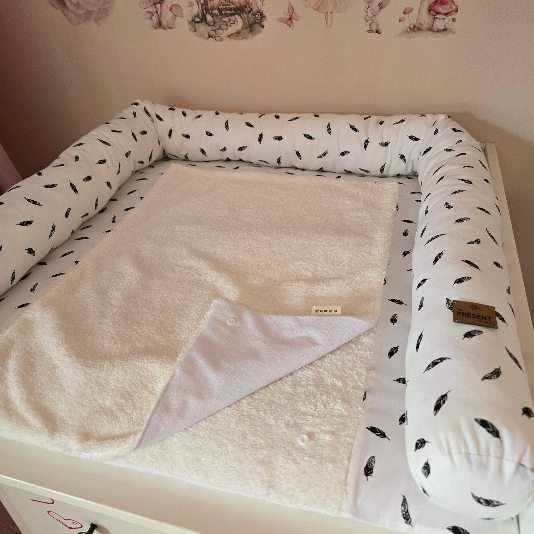 Beim Wickeln kann es turbulent werden – gut, wenn dein Baby dabei sicher gebettet ist. Unsere Wickeltischumrandung sorgt für eine weiche Begrenzung rund um die Wickelauflage und verhindert, dass sich dein Baby versehentlich wegrollt oder stößt.